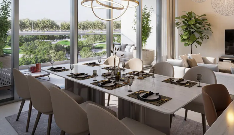This development goes beyond being a place to live; it’s an experience tailored for those who appreciate the finer things in life. Residents can wake up to the golden glow of their bedrooms as the sun rises, offering stunning views of the lush green golf course. At sunset, the sky transforms into a vibrant canvas, providing a breathtaking backdrop to the vast green horizon.